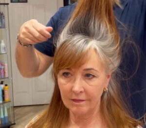 After much consideration, she finally took the step to visit a professional stylist and experiment with a dramatic hair transformation. The process took several hours, involving careful coloring and treatment to achieve the perfect ash gray shade. As the stylist worked, she could hardly believe that she was about to see herself in a completely new light.