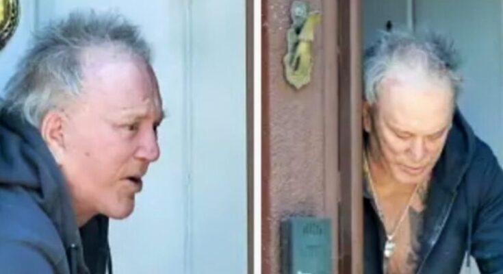 In a rare public sighting, 72-year-old actor Mickey Rourke was recently photographed outside his Beverly Hills home. Once a Hollywood heartthrob known for films like 9 ½ Weeks, Rourke looked a far cry from his leading-man days. Dressed in a gray hoodie left unzipped with no shirt underneath, green sweatpants, and sneakers, his disheveled hair and casual appearance caught attention as he chatted for nearly an hour with a pest control worker, according to Page Six.
